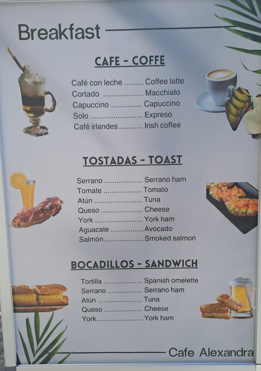 Welcome to Cafetería Alexandra, a charming café located steps away from the shimmering Mediterranean along Av. Jesús Astondoa Santamaría in picturesque Santa Pola, Alicante. Whether you’re looking to kickstart your day with a leisurely breakfast, enjoy a light lunch, or unwind with a cocktail as the sun sets, Cafetería Alexandra is your go-to destination.